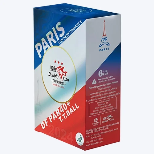 توپ پینگ پنگ دبل فیش پاریس، توپ رسمی مسابقات المپیک پاریس در سال 2024 است. این توپ‌ها با استفاده از مواد ABS ساخته شده‌اند که دوام و استحکام فوق‌العاده‌ای دارند و برای مسابقات رسمی و تمرینات جدی طراحی شده‌اند. این توپ‌ها با رنگ سفید و بسته‌بندی 6 عددی عرضه می‌شوند.