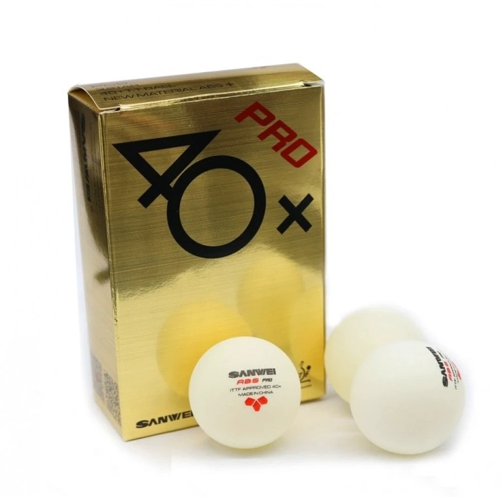 توپهای ABS نسل جدیدی از توپهای پینگ پنگ هستند که جایگزین توپهای سلولوئیدی شدهاند. آنها دوام بیشتری دارند و سازگارتر با محیط زیست هستند. توپهای ABS سانوی پرو 40 پلاس، از نظر صدا و احساس، شباهت زیادی به توپهای سلولوئیدی دارند.