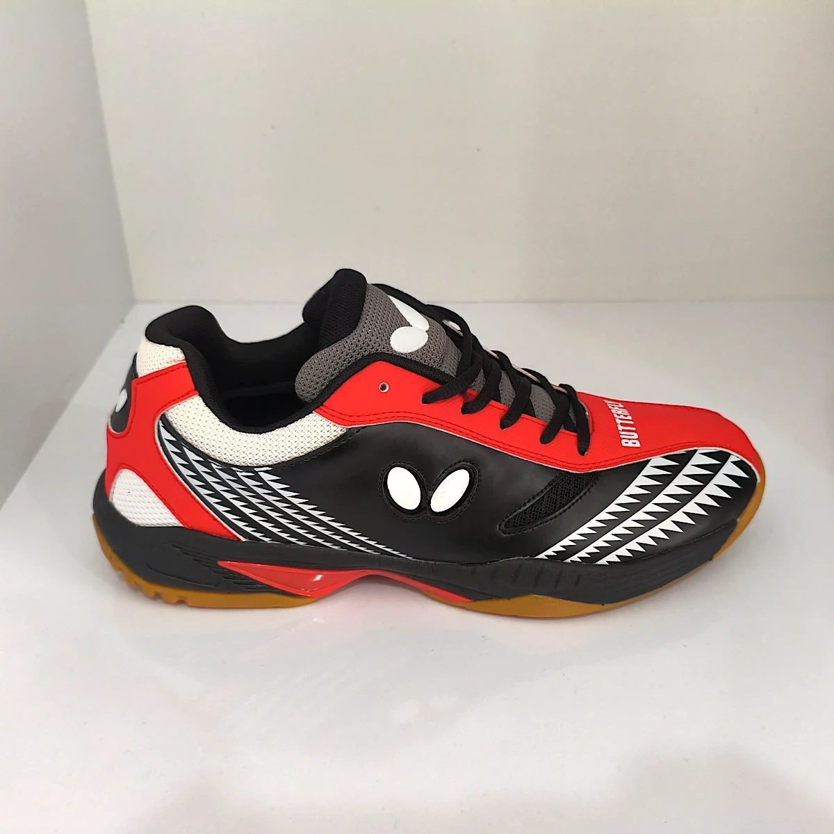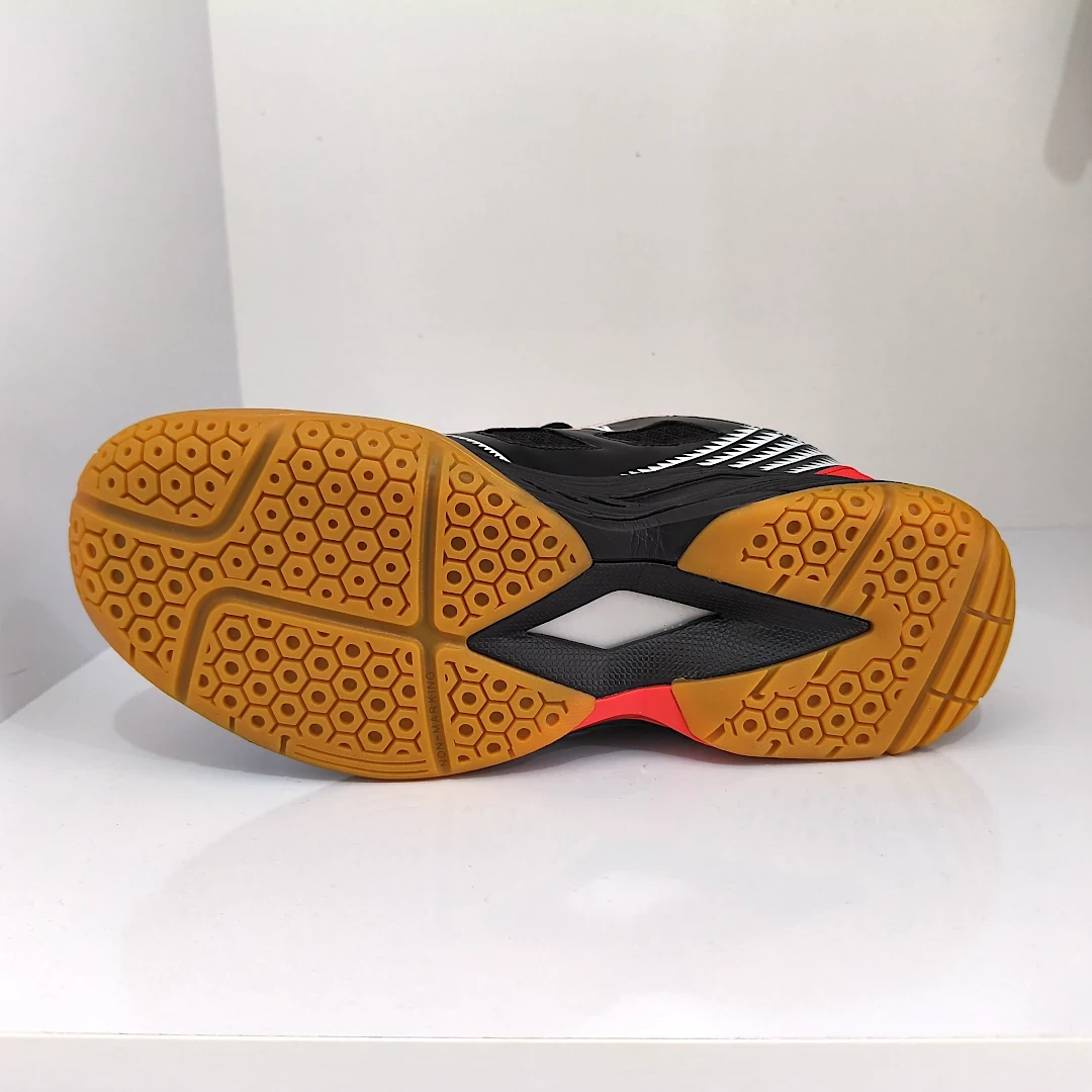 - چسبندگی بالا: زیره کفشهای باترفلای از موادی ساخته شده که چسبندگی بسیار خوبی روی سطح میز پینگ پنگ ایجاد میکند. این ویژگی برای حرکات سریع و تغییر جهتهای ناگهانی در بازی ضروری است.