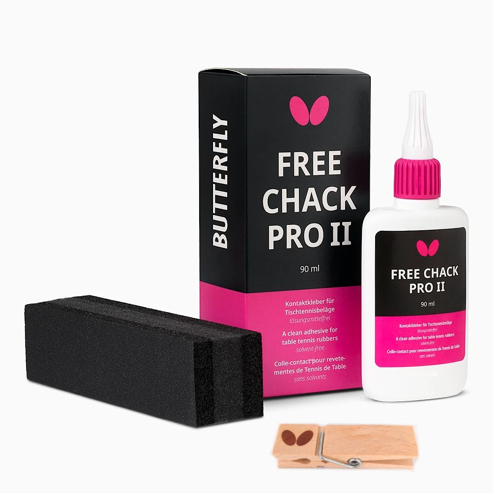 چسب فریچک پرو II باترفلای، نسل جدیدی از چسبهای آبی برای تنیس روی میز است که توسط شرکت معتبر باترفلای تولید و عرضه شده است. این چسب که با نام تجاری Butterfly Free Chack Pro II Glue 90mL نیز شناخته میشود، برای ایجاد اتصالی محکم و در عین حال انعطافپذیر بین رویه راکت و چوب طراحی شده است. فرمولاسیون فاقد VOC آن، مطابق با جدیدترین قوانین و مقررات فدراسیون جهانی تنیس روی میز (ITTF) است و استفاده از آن کاملاً ایمن میباشد. این چسب به بازیکنان اجازه میدهد تا رویه راکت خود را به راحتی چسبانده و جدا کنند، بدون اینکه به رویه یا چوب آسیبی وارد شود. کیفیت بالای این محصول، آن را به انتخابی محبوب در میان بازیکنان حرفهای و آماتور در سراسر جهان تبدیل کرده است.