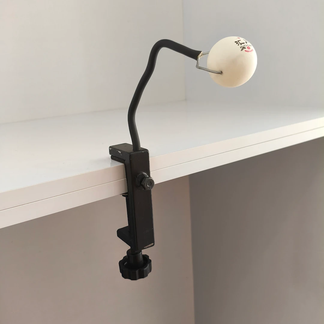 این دستگاه دارای یک پایه محکم و پیچدار است که به راحتی روی میز پینگپنگ نصب میشود. پایه آن قابلیت تنظیم ارتفاع و زاویه دارد تا بازیکن بتواند در موقعیتهای مختلف تمرین کند.