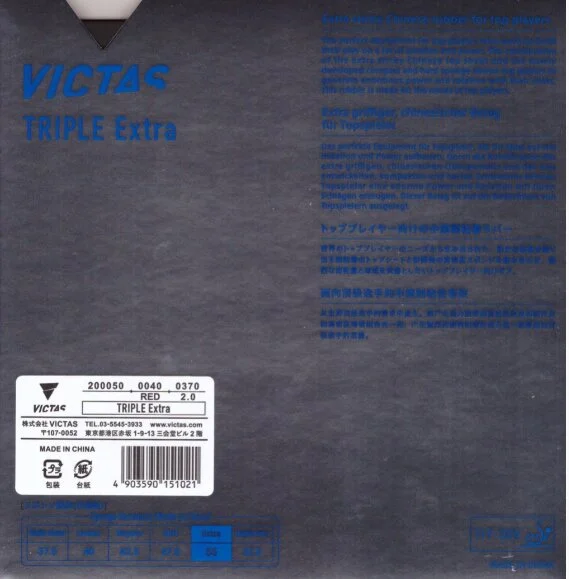 Victas یک برند ژاپنی معتبر در زمینه تولید لوازم پینگ پنگ است که با تمرکز بر نوآوری و کیفیت، محصولاتی بینظیر را به بازار عرضه میکند. این برند با همکاری بازیکنان حرفهای و استفاده از تکنولوژیهای پیشرفته، همواره در تلاش است تا نیازهای بازیکنان در سطوح مختلف را برآورده کند. رویههای سری Triple Extra، از جمله Victas Triple Extra، به دلیل عملکرد بالا و کیفیت ساخت فوقالعاده، در بین بازیکنان حرفهای بسیار محبوب هستند.