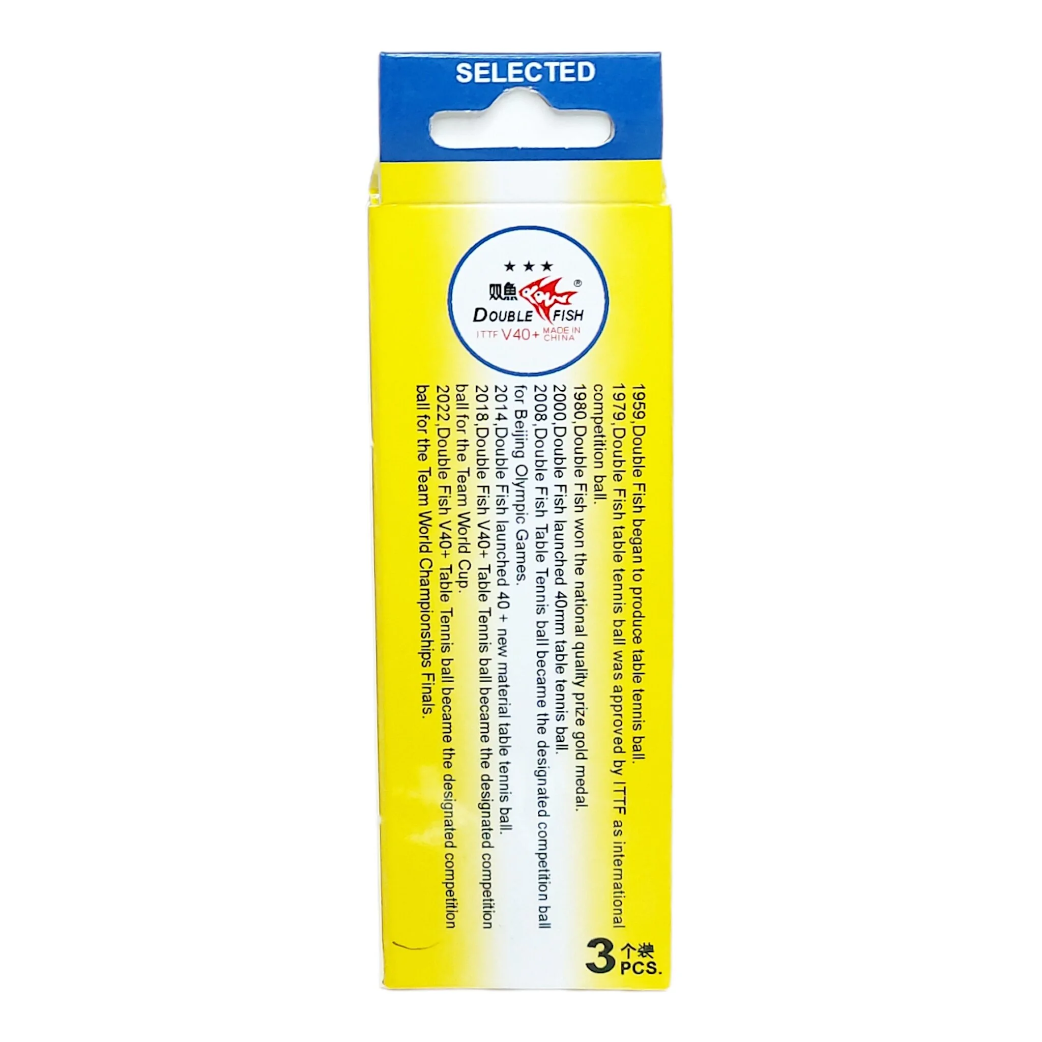 توپ پینگ پنگ دبل فیش ورلد کاپ سه ستاره V40+ توپ مسابقه ای می باشد و از بهترین برندهای معتبر دنیا می باشد .