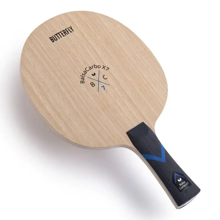 چوب راکت بالسا کربو ایکس 7 باترفلای، محصولی از ترکیب هوشمندانه چوب بالسا نرم و فیبرهای کربن است. هسته مرکزی از چوب بالسا، زمان ماندگاری توپ بر روی راکت را افزایش داده و امکان تولید پیچ و قدرت بالا را فراهم میکند. این ویژگی به بازیکن اجازه میدهد تا ضربات کات و تاپ اسپین را با دقت و قدرت بیشتری اجرا کند.