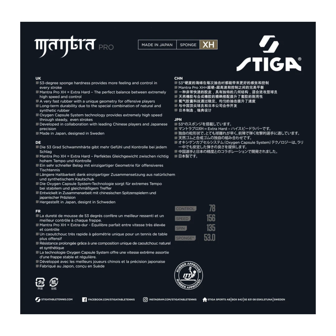 رویه راکت استیگا مانترا پرو XH با دقت مهندسی شده تا نیازهای بازیکنان حرفهای و مهاجم را برآورده کند. این رویه که محصولی از همکاری نزدیک با بازیکنان برجسته چینی و دقت ژاپنی است، بهترینها را از هر دو جهان گرد هم آورده است.